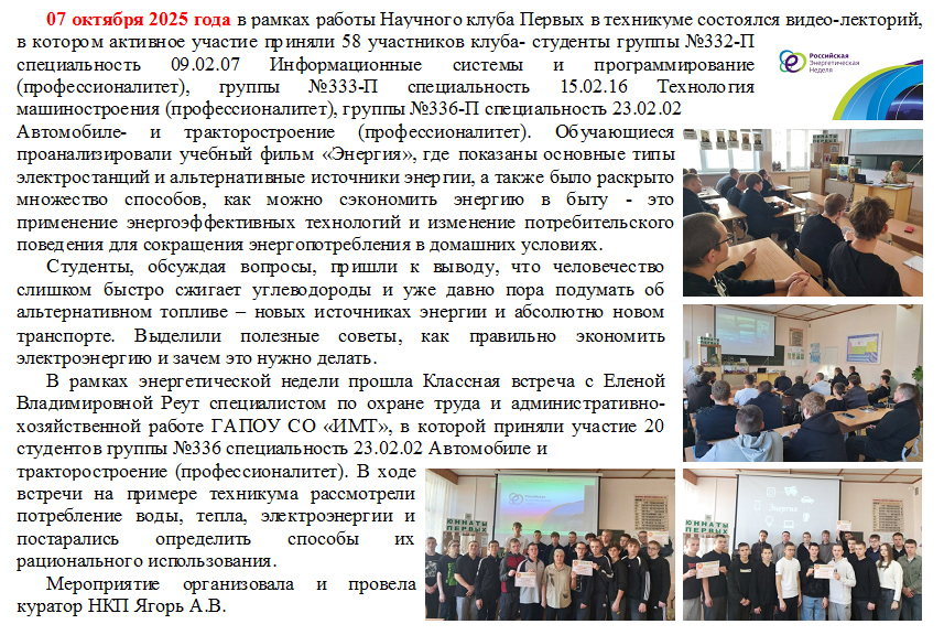 ПРИКАЗ № 253-од от 17.09.2025 г. О персональном составе Научного клуба Юнисты первичного отделения «Движение Первых» ГАПОУ СО «ИМТ»